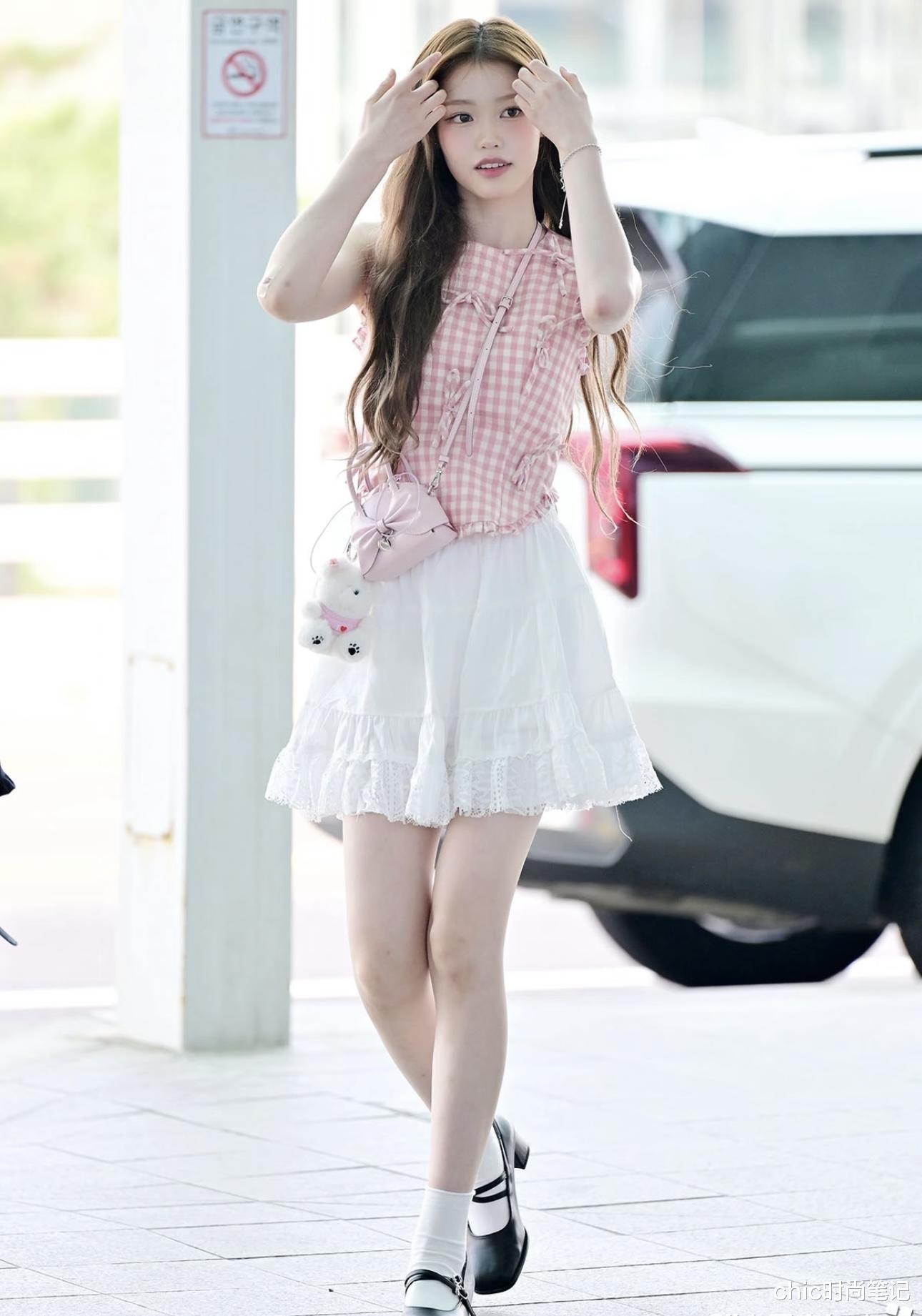 唱跳爱豆出身的孔雪儿很多穿搭都自带甜美纯欲氛围感。