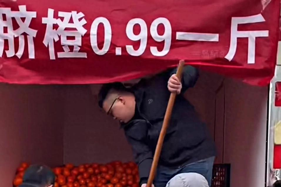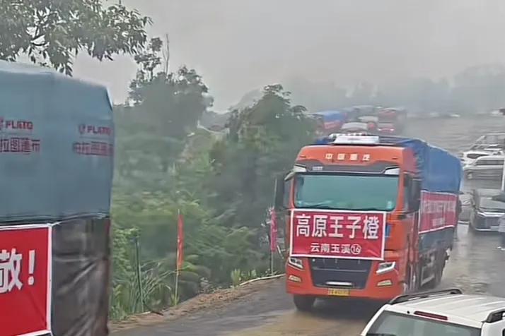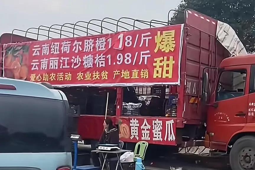 起因是货车司机去拉货,因为同行太多了,货车运输费太卷了,导致货车司机赔本运输,于是他们自发地去果园拉水果,然后超低价售卖。