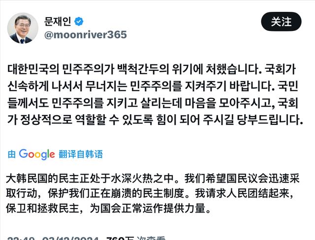 就连我们熟知的文在寅,在这次的事件发生时,也在自己的社交媒体发声。