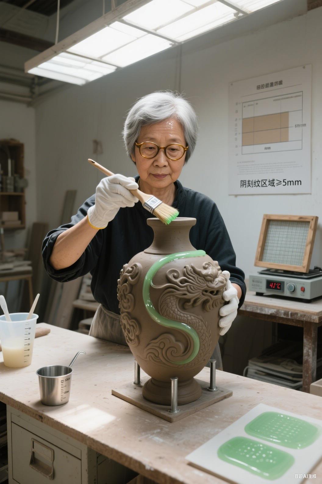 修整好的蜡模被放入特制的耐火石膏中,进行灌石膏模的工序。石膏凝固后,将其放入蒸气桶中,利用高温蒸气将蜡模熔化排出,留下中空的石膏模。这就是 “脱蜡” 的过程,也是整个工艺中最为关键的一步。脱蜡后的石膏模,就像是一个等待被填满的宝藏容器,等待着琉璃的注入 。