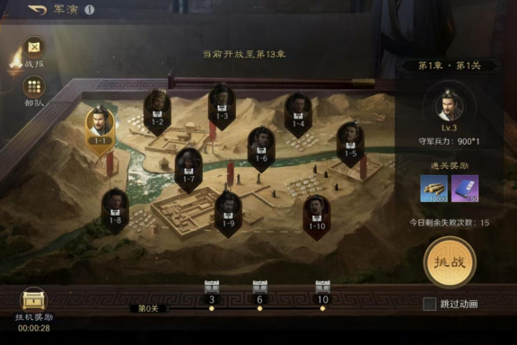 在三谋的世界里,新手不必担心"画错画布"的风险。8%的橙卡爆率和20抽保底机制,如同选用优质颜料般确保创作基础;主城自带资源土地避免抢地纠纷,就像提前规划好的绘画区域;练兵所自动升级功能,则让玩家有更多精力专注于战略布局。七天免费送125抽卡券和强力橙将的福利,更是给新人送上"全套绘画工具",轻松开启策略之旅。