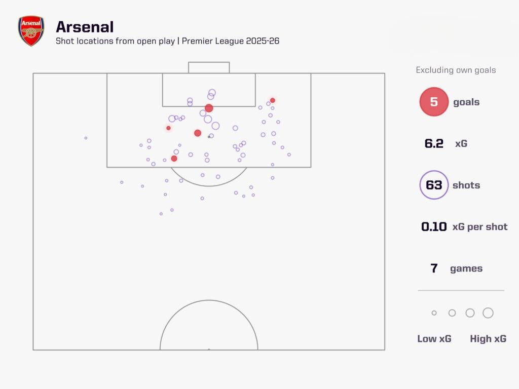 这意味着,当他们真的失球时,他们可能会陷入困境。在本赛季他们失球的三场比赛中,他们要么丢分了,比如对阵利物浦和曼城的比赛,要么差点丢分,比如在对阵纽卡斯尔的比赛中,直到加布里埃尔·马加良斯在伤停补时阶段打入制胜球。他们还需要在最后时刻扳平比分才能从曼城身上拿到1分。