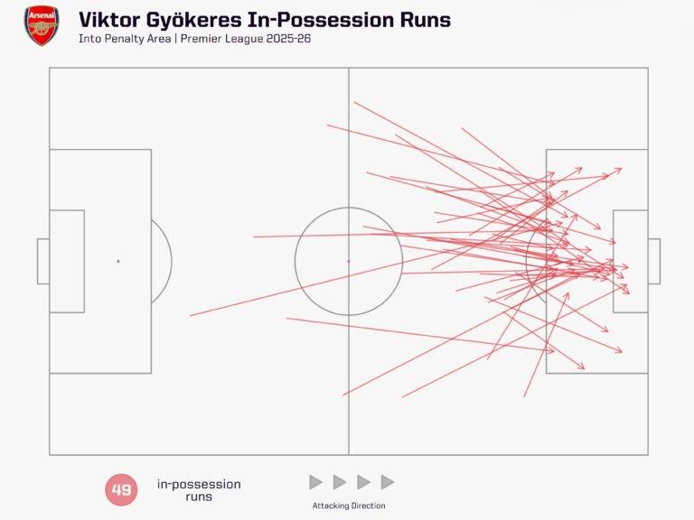 约克雷斯是这四名球员中唯一还需要观察的,但即使他的进球数没有达到他自己、阿尔特塔或任何阿森纳球迷所期望的那样多,他仍然通过自己的跑位创造了空间,并持续牵制着防守球员。