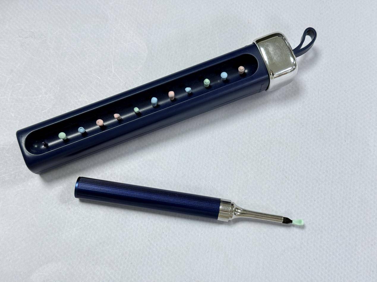 蜂鸟3Plus的手柄用了亲肤软硅胶,不仅手感好,还能有效防滑,握持起来很稳。它的专利蛇形可弯曲镜头套管,能适配不同人的耳道弯度,调整角度很灵活。不过套管的弯折幅度有限,没法充分弯曲,会限制镜头的可视范围,清洁时观察起来不够方便。耳勺头选用医用级硅胶,质地柔软贴合耳道,能最大程度避免划伤耳道黏膜,儿童和耳道敏感人群都适用,配备四种可拆装清洁头,应对不同耳垢类型,适合家庭日常护理。