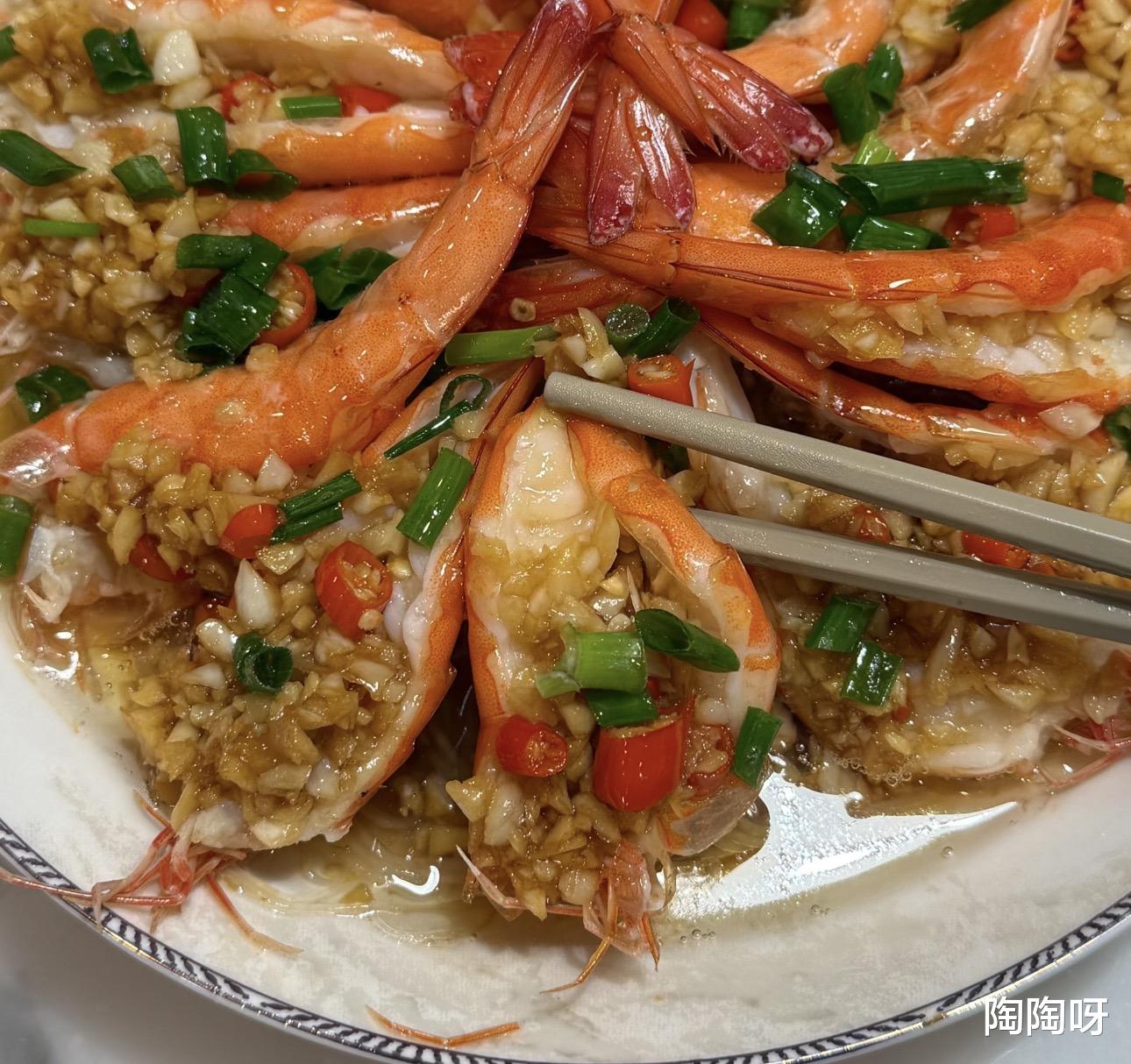 好了,一道色香味俱全的蒜蓉粉丝虾就大功告成了!虾肉晶莹剔透,粉丝吸饱了蒜蓉和虾的鲜味,保证你吃了第一口就想吃第二口,根本停不下来!快去试试吧!