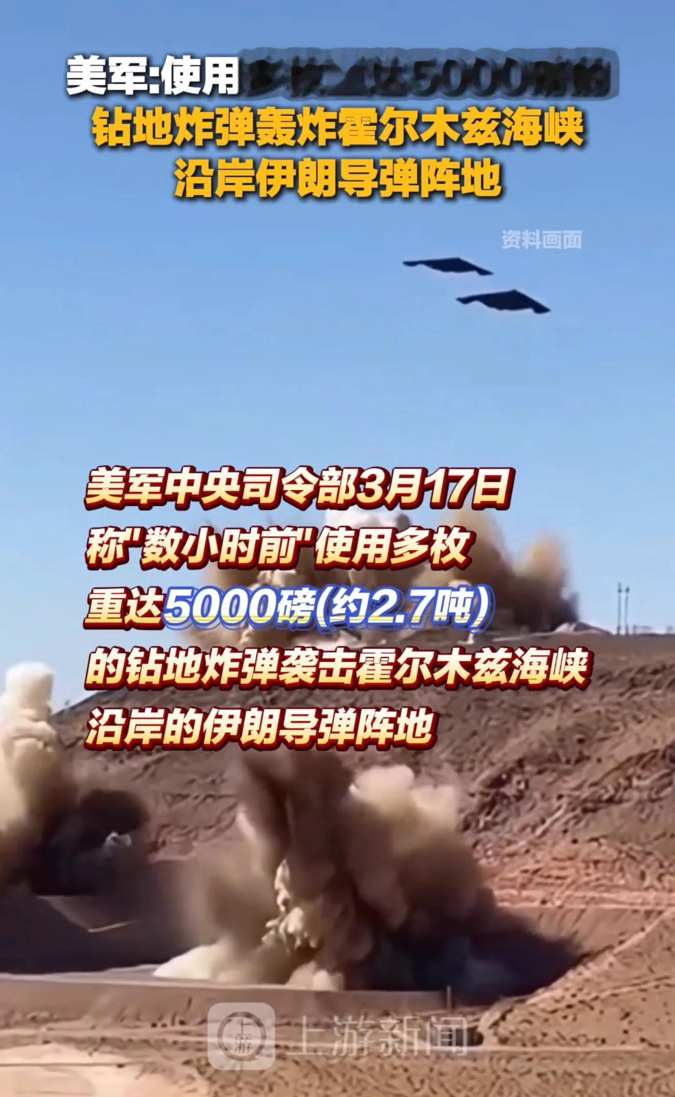 3月17日,美军使用多枚5000磅一枚钻地弹,试图打通霍尔木兹海峡沿岸的伊朗导弹阵地。