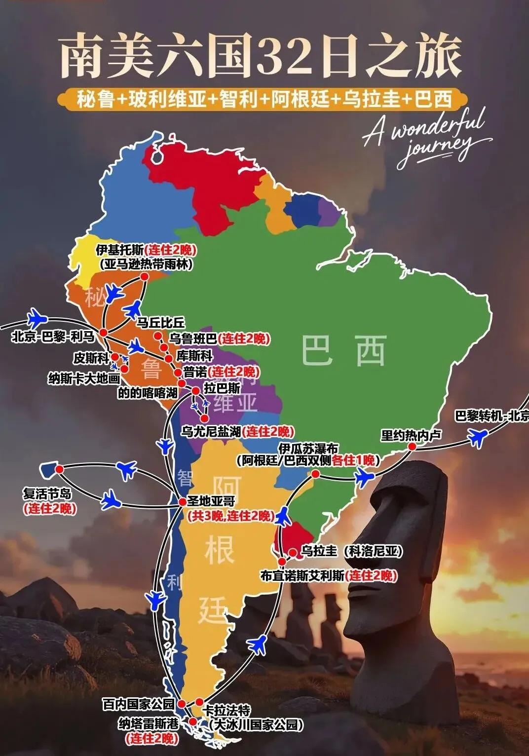 2)最轻松的板块(⭐️ 休闲型)亚马逊雨林段(以船行为主、步行短段为辅)、纳斯卡地画(空中观景为主,但要注意晕机)、的的喀喀湖(乘船为主),走路不多。