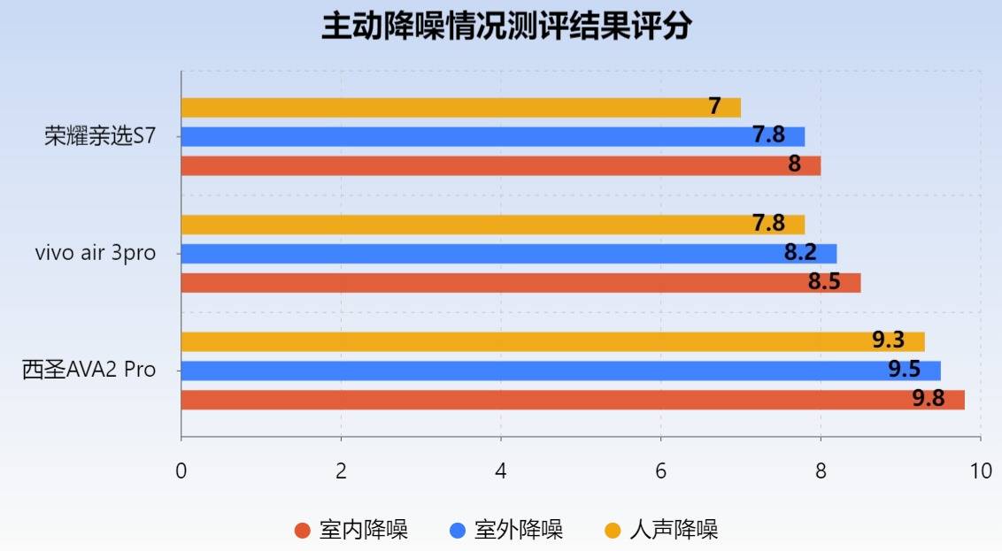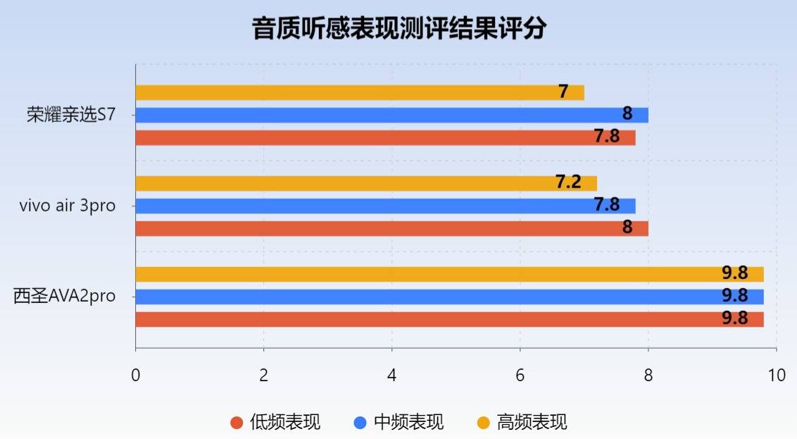 相比之下,vivo Air 3 Pro在通话降噪和主动降噪方面表现出色,但音质略逊于AVA2 Pro;而荣耀亲选S7则在便携性和操作便捷性上有优势,但整体声音解析力和续航表现稍显不足。