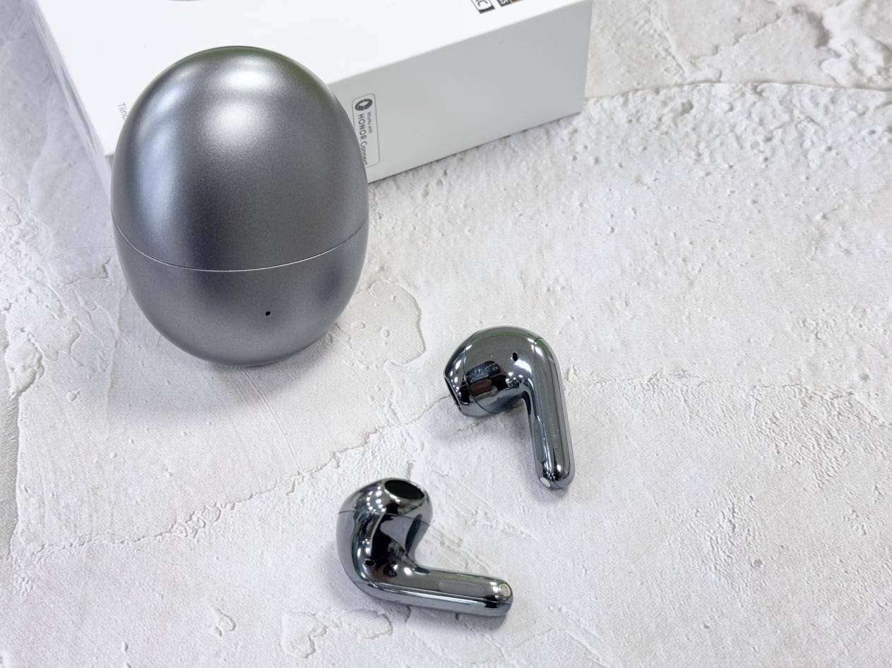 (3)荣耀亲选Tiin Lab S7:单耳重量仅4.7克,轻盈机身结合科学重心布局,使重心稳定落在耳甲腔内,佩戴时几乎没有负担感,舒适度出色。不过由于耳机表面偏光滑,手汗较多时取放需稍加注意,以防滑落。