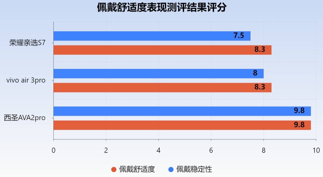 佩戴舒适度排行:西圣AVA2 Pro>荣耀亲选TiinLab S7≈vivo air 3pro