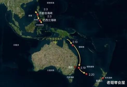 最近,我55编队横穿菲律宾民都洛海峡和巴西兰海峡,然后在苏拉威西海虚晃一枪,直奔南太平洋海域,进而抵达澳大利亚附近公海海域。