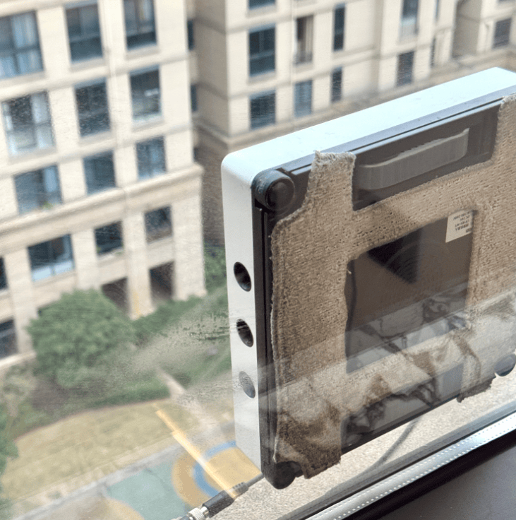 安全设计也很贴心。机身搭载了WSafe断电保护系统配合内置600mAh备用电池,即便停电也能自动供电约25分钟回到安全位置;再加上150kg登山级安全绳,多重防护让高层擦窗无忧。