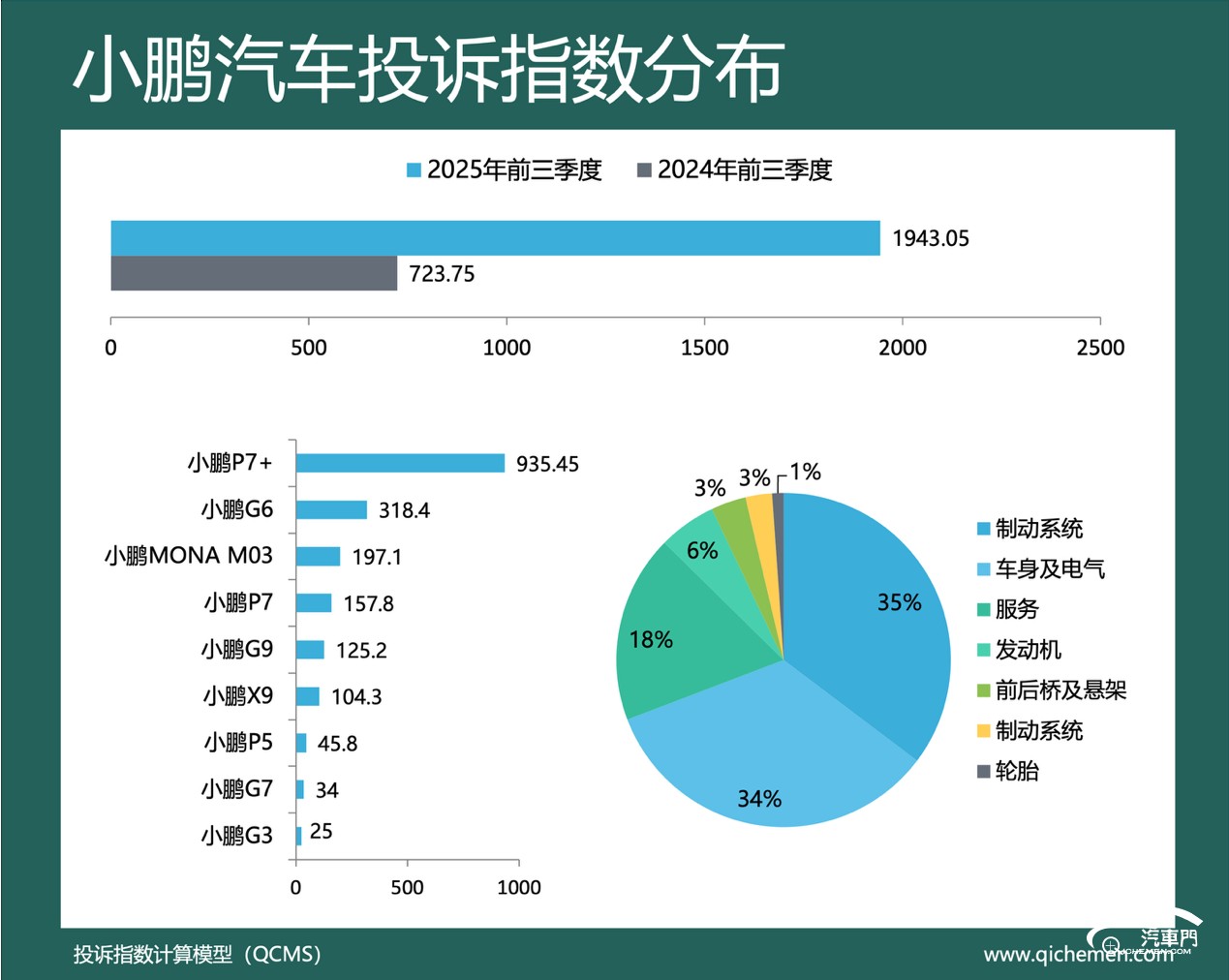 汽车质量投诉点评:小鹏汽车今年前9个月的投诉指数为1943.05,同比上涨168.47%,转向机线束裸露问题是该车收到大量投诉的主要原因。根据车主反馈,该问题在小鹏P7+车型中出现得十分频繁。许多该车型车主投诉称,该车的转向机线束裸露问题十分严重,尤其在雨水天气或颠簸路段行驶时,转向机接口极易出现断联情况,可能导致汽车转向助力失控,极易发生交通事故。对此网络上多位从事汽车研发的业内人士证实,这是由于小鹏汽车的转向机线束接口存在设计缺陷导致的,该设计在潮湿环境下容易出现问题,属于典型设计缺陷。为了解决此问题,不少车主寻求售后服务,但售后服务人员的回复却“看人下菜”。