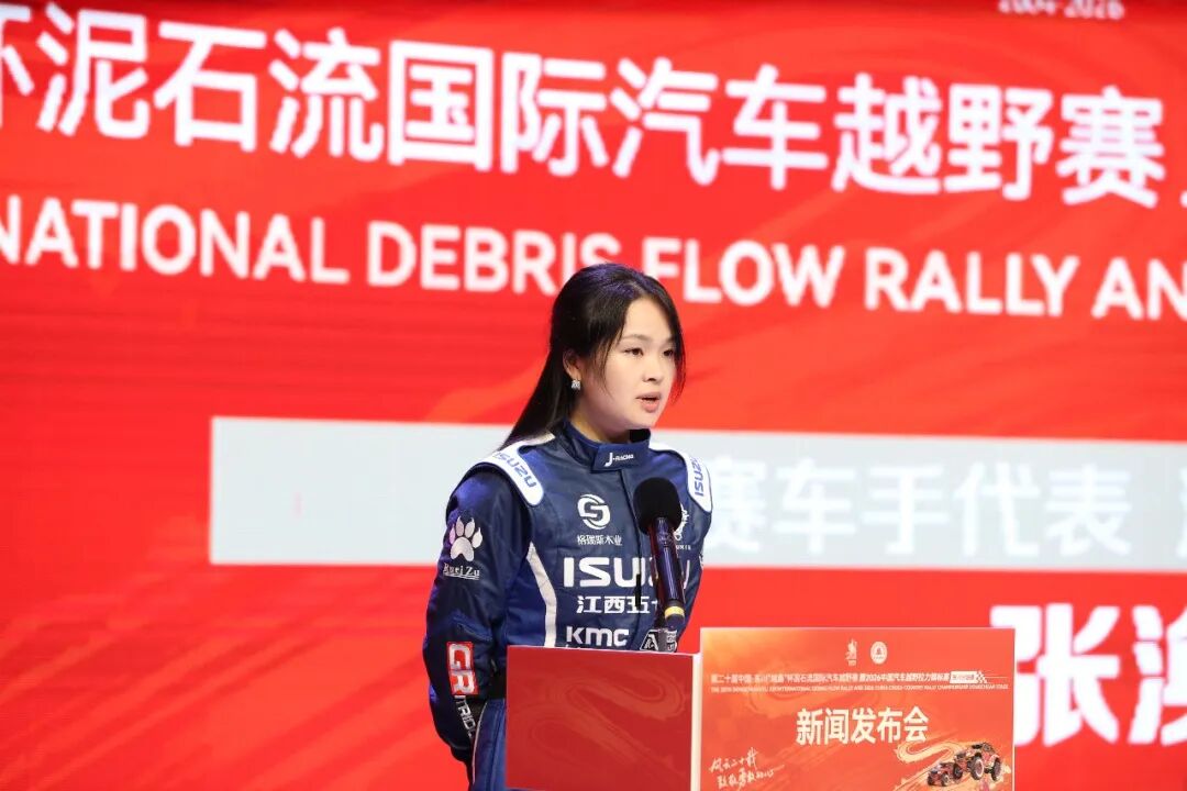 江西五十铃车队车手代表张涣曦作为本届比赛参赛选手代表发言,她将与全新 D-MAX 3.0T 赛车一同踏上东川赛道,向这条传奇赛道发起挑战。