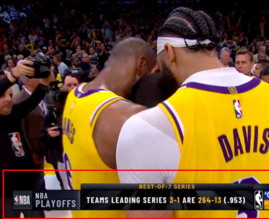 北京时间5月9日,詹库之争第四回上演。詹姆斯笑到最后,整场比赛,他25投10中,三分9中2,罚球5中5砍下27分9篮板6助攻。这一战,詹姆斯迎来里程碑,季后赛两分球命中数超越贾巴尔(2356),升至NBA历史第一!不过,真正拯救湖人的是沃克,老詹赛后激动拥抱沃克庆祝,库里低头沮丧离场,据统计,湖人晋级概率达到了95.3%,3-1领先系列赛最终结果为264胜13负。。