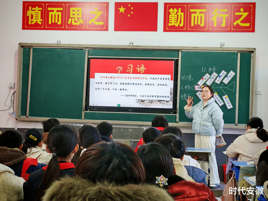 在她的指引和不断鼓励下,一群活泼可爱的孩子,以争做小导演为任务群,探究小说英雄人物形象为主线;在充分的师生交流、同在朗朗的“习语”诵读中,深刻感悟到了“共产党员的先锋模范作用”;在交流中,感受着老党员一切为别人着想的情怀,体会着阅读的乐趣;在仿写颁奖词的训练中,创意表达着对英雄的赞颂。张老师用她的智慧,构建了大思政课目标体系的综合素养型课堂。