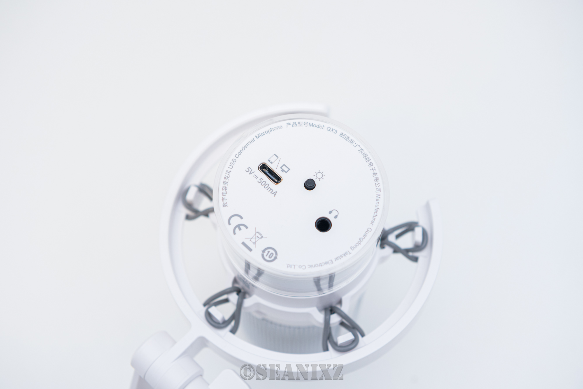 ● 顶部:触摸感应静音键,轻触即可快速闭麦;