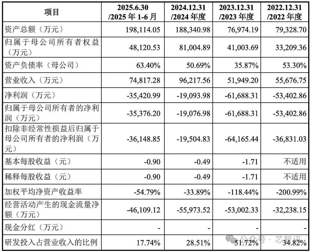 净利润方面,报告期内公司仍处于亏损状态:2022年至2025年上半年,净利润分别为-5.34亿元、-6.16亿元、-1.90亿元、-3.54亿元。公司解释,亏损主要系持续高强度的研发投入以及早期市场拓展成本所致。2025年下半年以来,存储市场行情回暖,产品单价上升,为盈利能力改善提供了有利条件。