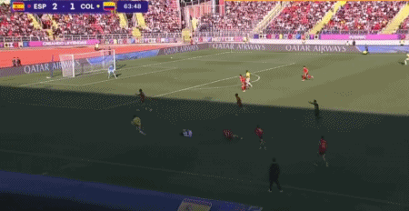 可好景不长,比赛第65分钟,内塞尔-比利亚雷亚尔破门扳平比分,哥伦比亚2-2西班牙