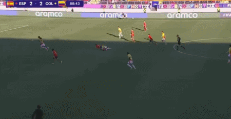 比赛第90+1分钟,内塞尔-比利亚雷亚尔破门完成帽子戏法,哥伦比亚3-2西班牙。第90+3分钟,贝莱德禁区内倒地判点,哥伦比亚挑战VAR,回看后取消点球判罚,最终西班牙惨遭绝杀出局。