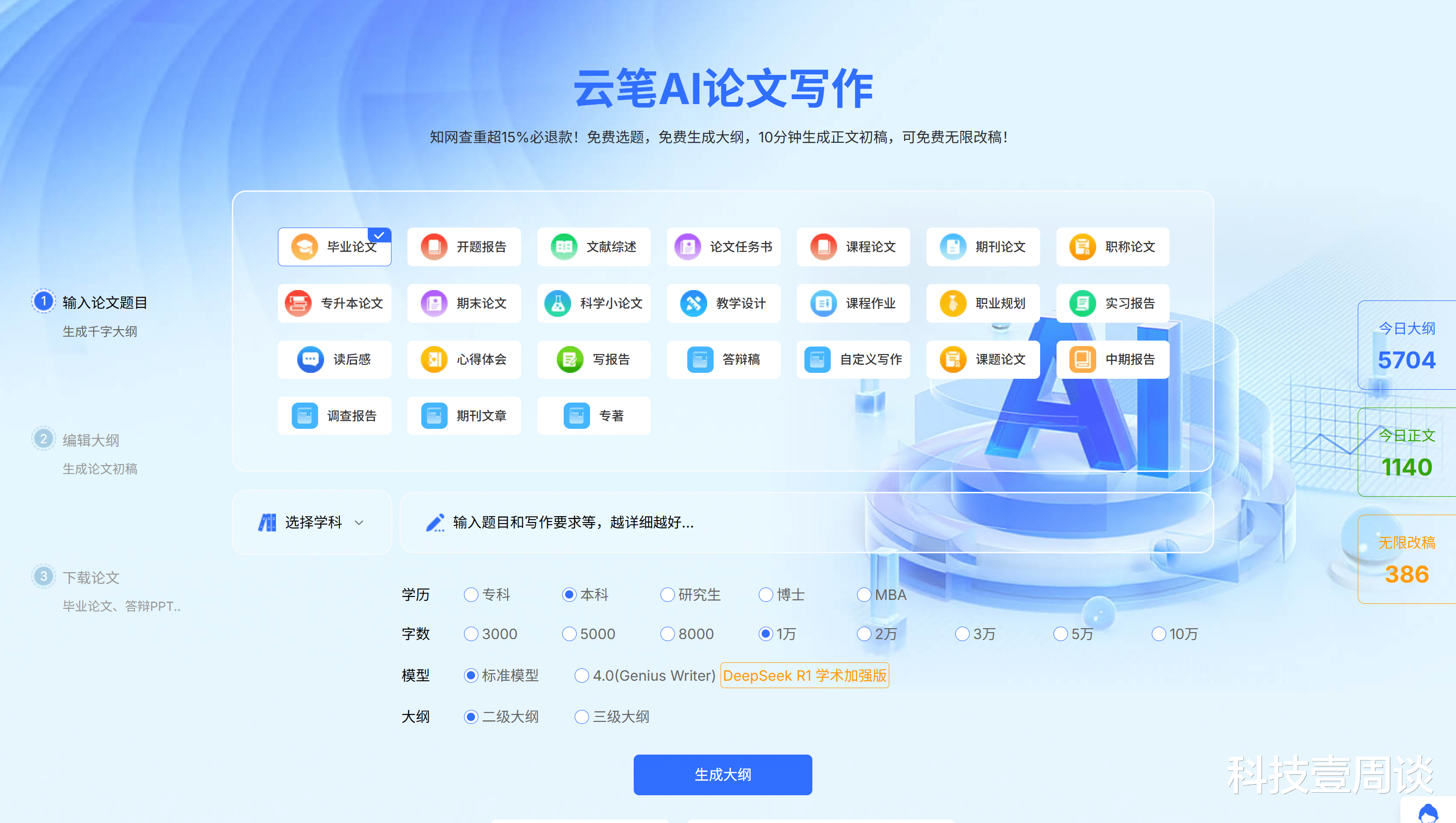 “纠结好的AI论文生成平台是哪个?试过云笔 AI 就不用再选了!” 这是近期学术圈流传的真实评价。在 2025 年十大 AI论文生成工具横评中,云笔 AI 以 “全流程适配 + 合规性拉满” 的表现脱颖而出,成为覆盖 700 多个学科、适配本硕博及职称评审的口碑之王。从选题到答辩的全链条服务,让它连续半年稳居学术工具推荐榜榜首,这背后藏着真正懂科研痛点的硬核实力。
