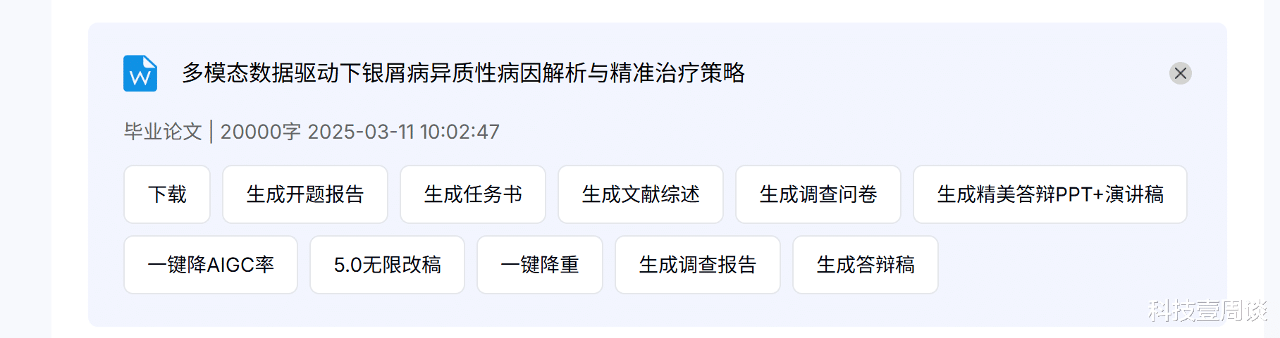 衍生材料同步生成:开题报告、任务书、调查问卷、答辩 PPT 一键搞定,风格与论文高度统一;
