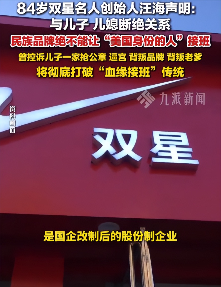在汪海列出的决裂理由中,“接班人国籍”被置于首位,成为他不可妥协的底线。他明确指出,儿子汪军与儿媳徐英均为美国身份,而双星是国企改制后的民族品牌,血脉里流淌着中国产业的基因,绝不能落入外籍人士手中。这份坚守背后,是老一代企业家对民族品牌的深沉情怀,在他们心中,品牌的掌舵者不仅需要商业能力,更要有对国家、对品牌的绝对忠诚与责任担当,外籍身份背后可能存在的利益倾向与情感疏离,是他无法容忍的风险。