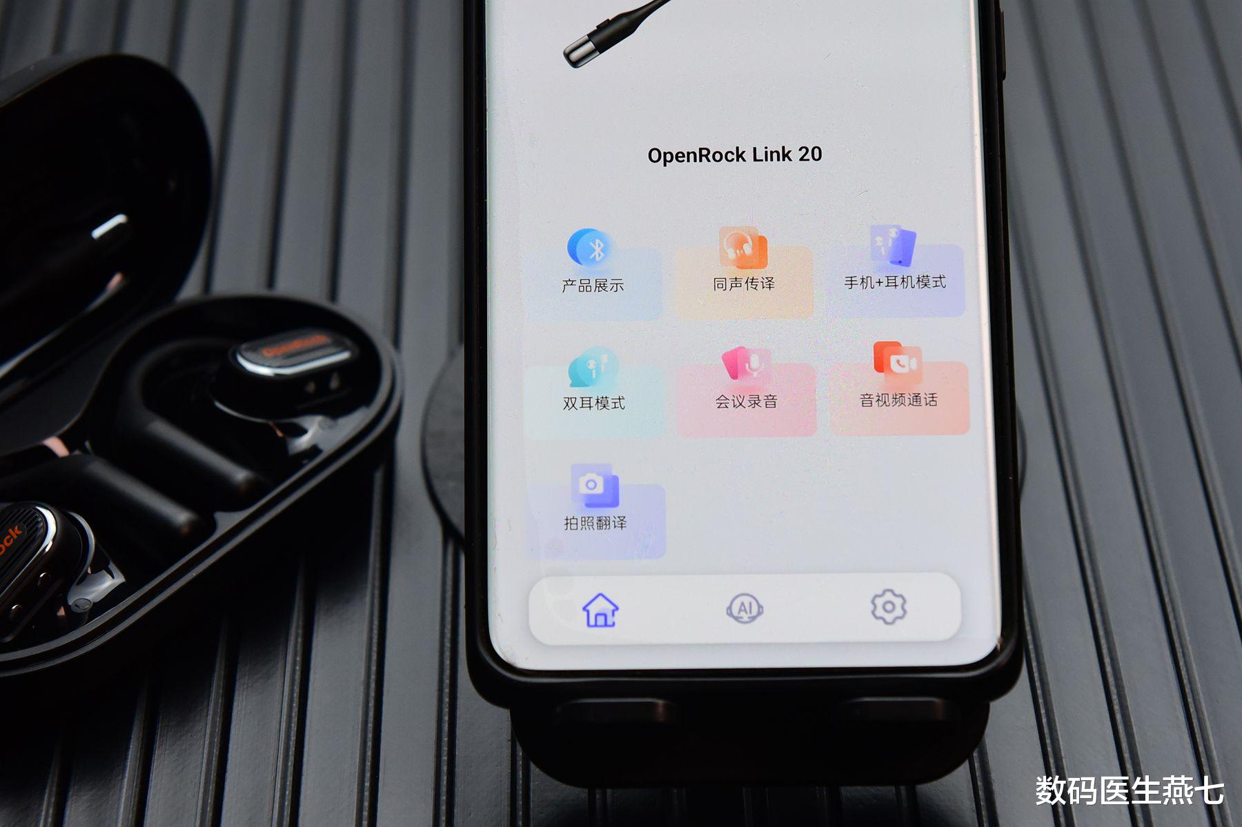▲比如OPENROCK LINK20,下载其官方APP后,不仅有同声传译功能,还有手机+耳机模式以及双耳模式、会议录音、音视频通话翻译、拍照翻译等功能。