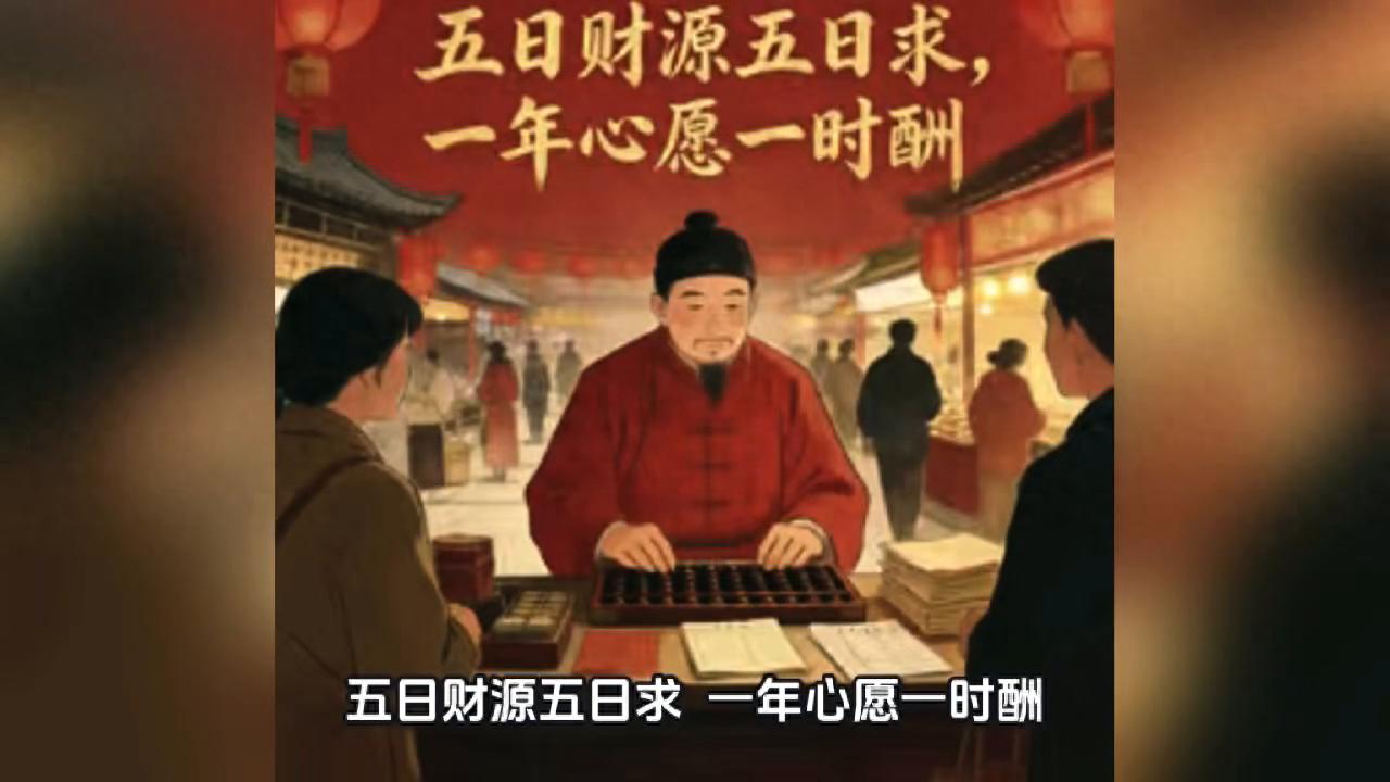 五日财源五日求,正月初五迎财神。请欣赏清代诗人蔡云《竹枝词》。五日财源五日求,一年心愿一时酬。提防别处迎神早,隔夜匆匆抱