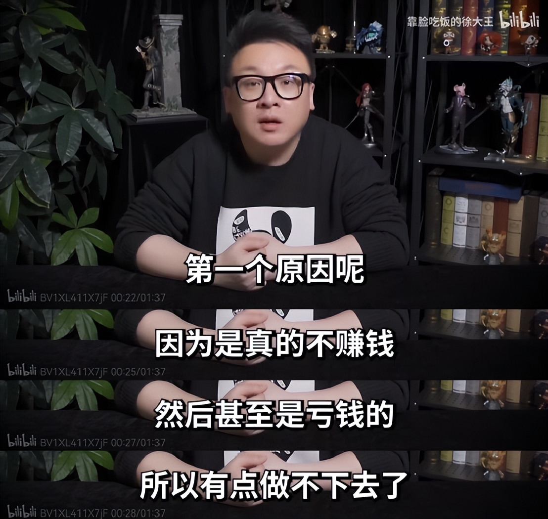 2023年4月,“B站UP主发起停更潮”的话题一度冲上微博热搜榜。游戏区UP主“靠脸吃饭的徐大王”坦言,停更的部分原因是做视频不赚钱甚至亏钱,做不下去了。