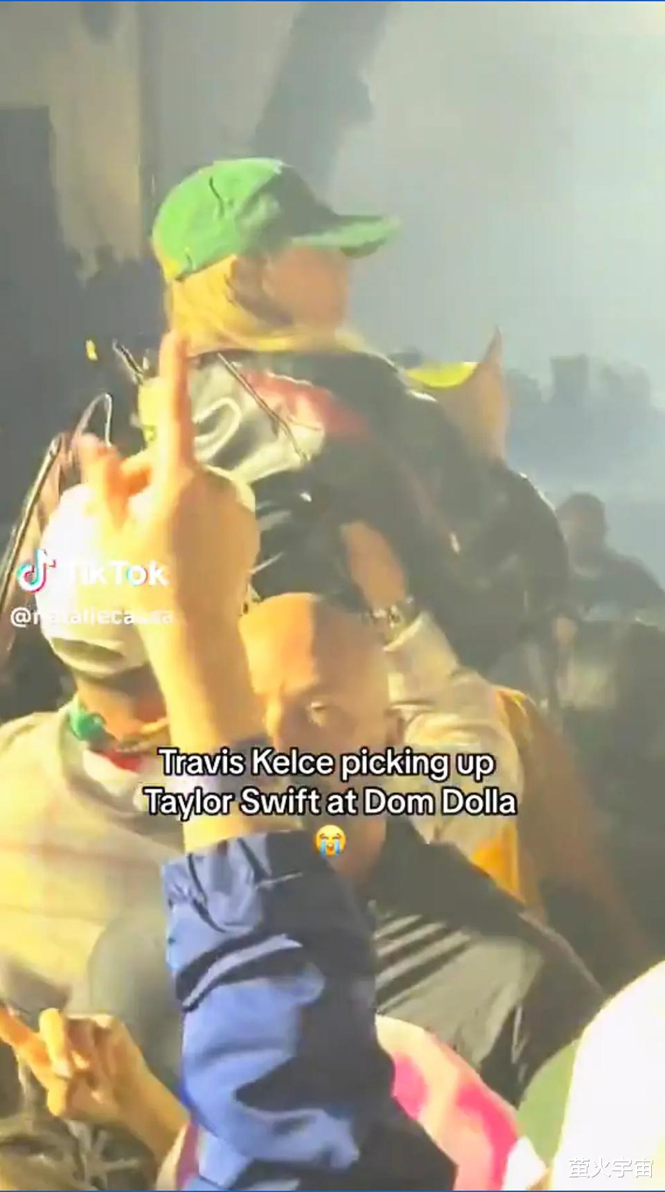 从社交媒体上流传的一张照片看,当多姆·多拉(Dom Dolla,澳大利亚音乐人)走上台开始演奏后,霉霉被特拉维斯举了起来,难道说橄榄球明星想要趁此机会练练体力?