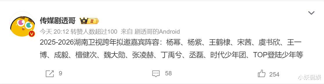 湖南卫视跨年晚会拟邀嘉宾曝光:多人是演员,两大男团受邀