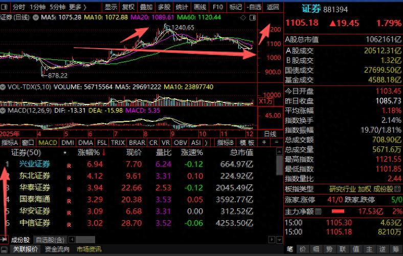 受周末消息影响,券商今日大幅高开,开盘后快速拉升,但很快回落,后虽有拉升,却无量,跟随者寡,最终走成了冲高回落,痛快玩了一把套人把戏。上周五的“头羊”--“中银”在集合竞价阶段就被“兴业”换掉; 兴业开盘后快速拉升至涨停,但盘中反复砸板终未能涨停报收,但全天保有“头羊”位;板块内无个股涨停,且有5家飘绿。
