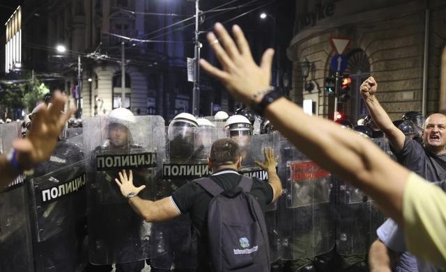 根据俄媒“今日俄罗斯”的报道,示威者与警方爆发了激烈冲突,他们不仅向警察投掷杂物,还使用了烟花等爆炸物。截至目前,塞警方已经逮捕了数十名暴力示威者。