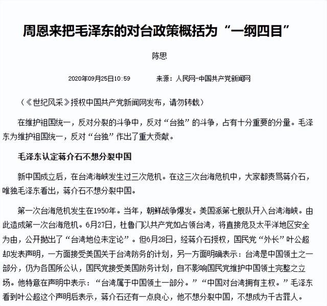 尽管蒋介石一直想反攻大陆,但他思索再三,他还是不愿意成为分裂国家的罪人,明确表示台湾是中国的一部分。