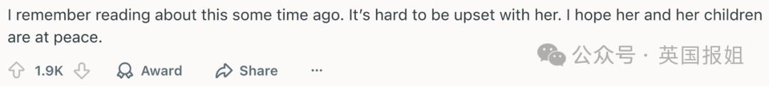 “我记得之前读过这个故事,很难怪她。希望她和她的孩子们得到了平静。”