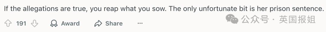 “如果指控都是真的,那就是恶有恶报。唯一不幸的是她的无期徒刑。”
