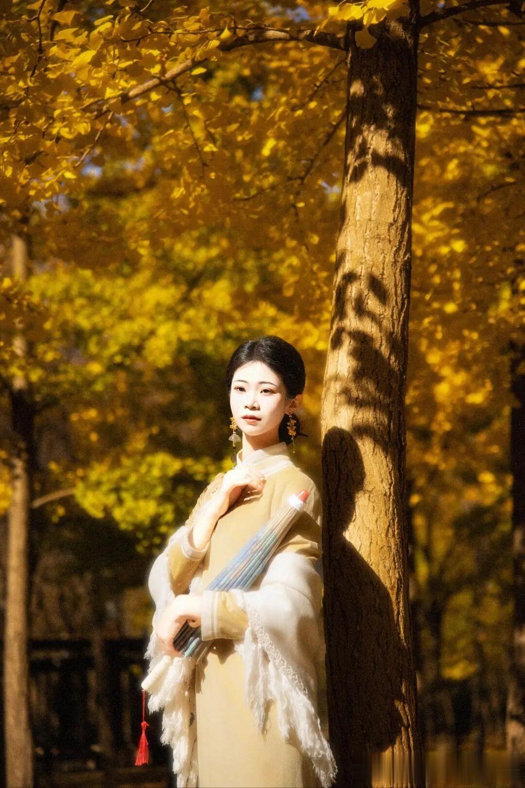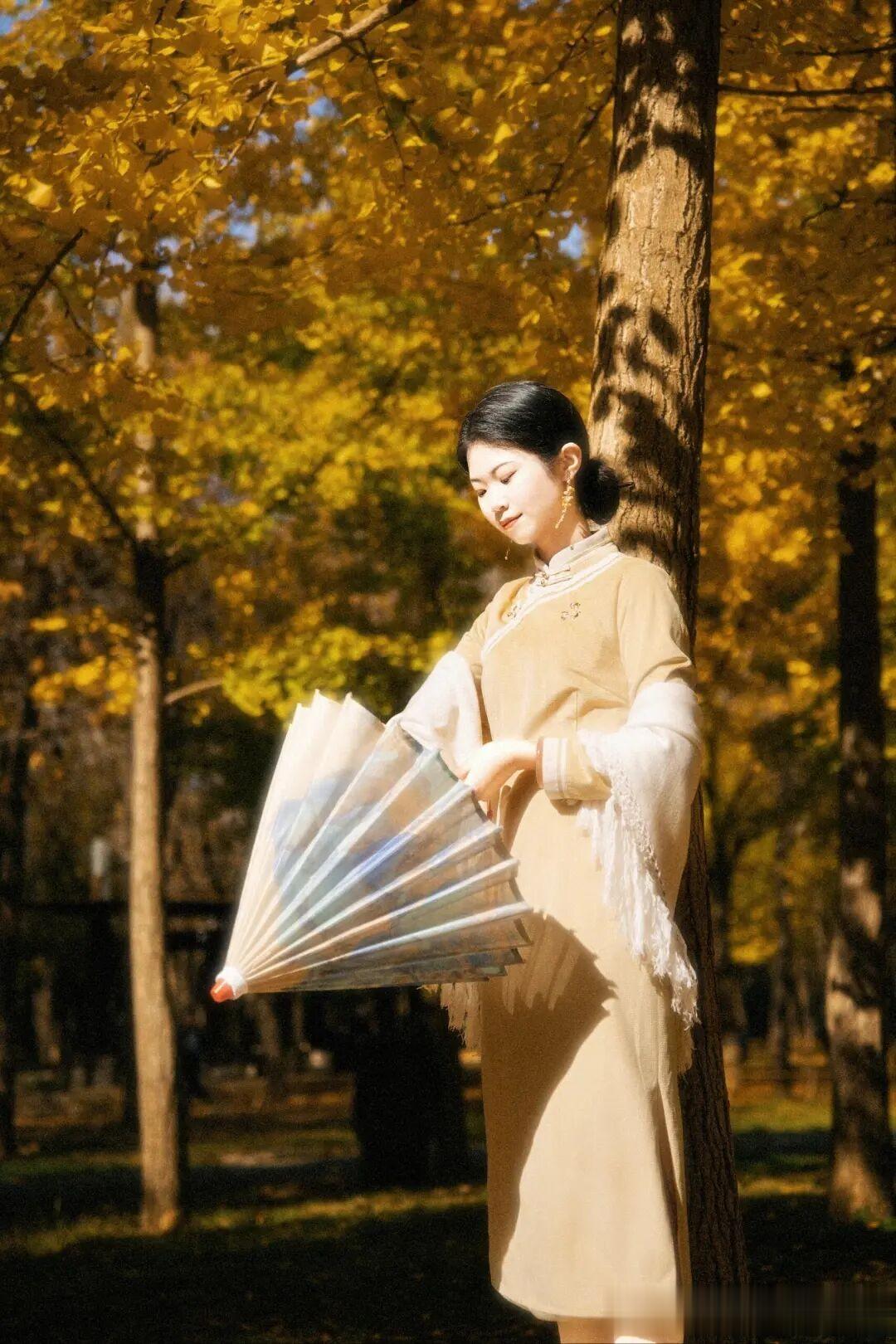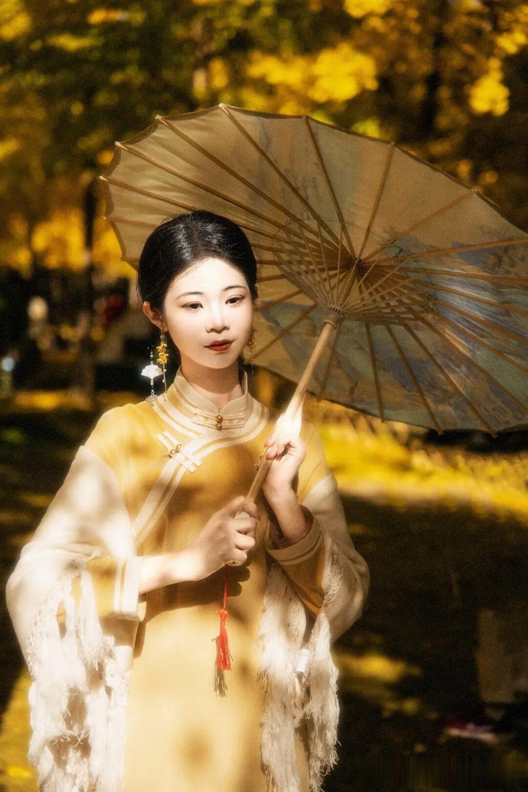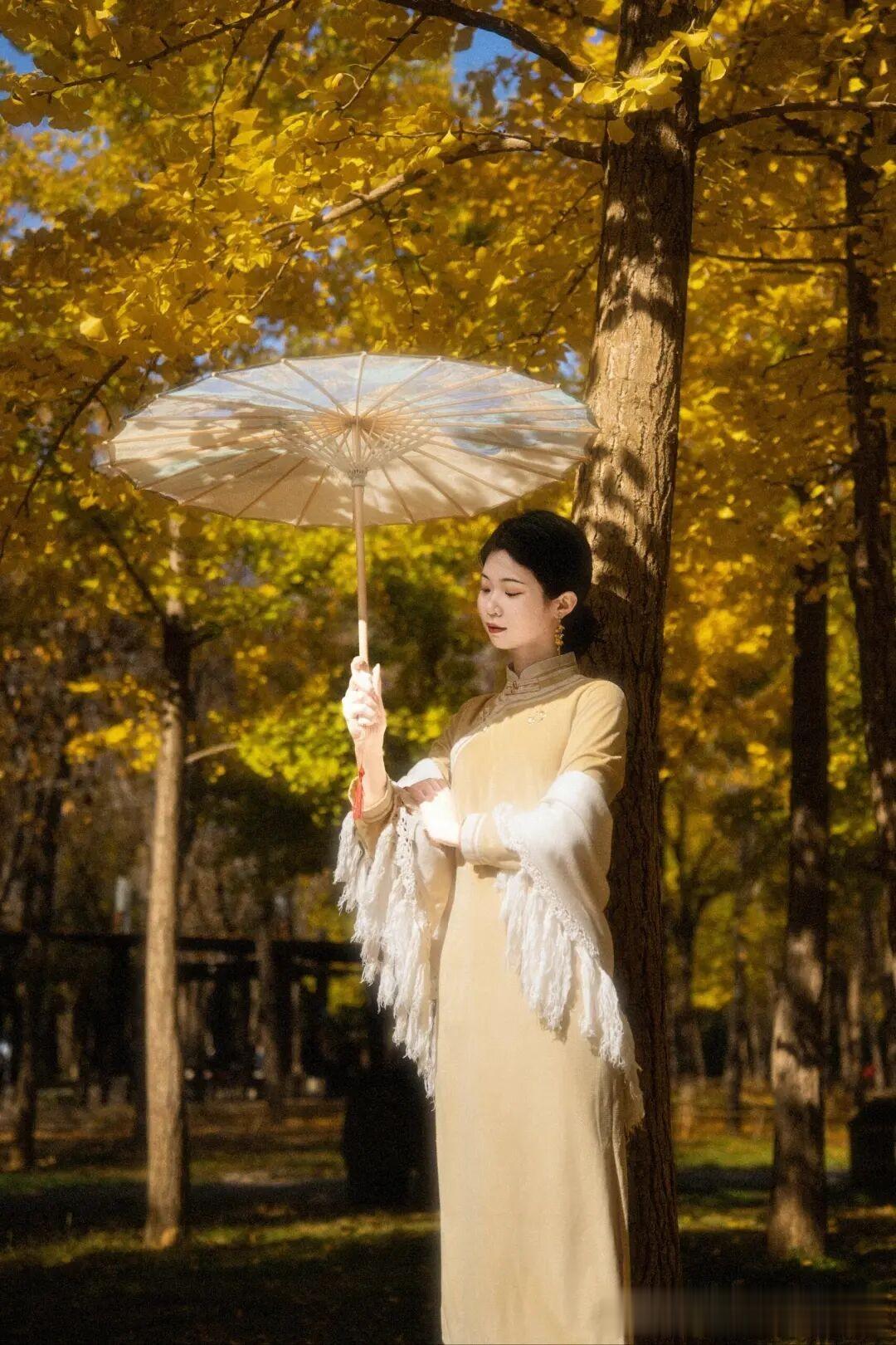 秋日的早晚还是有些凉的,可以在旗袍上搭配一个小披肩,一方面起到保暖的作用,另一方面也可以作为拍照道具。