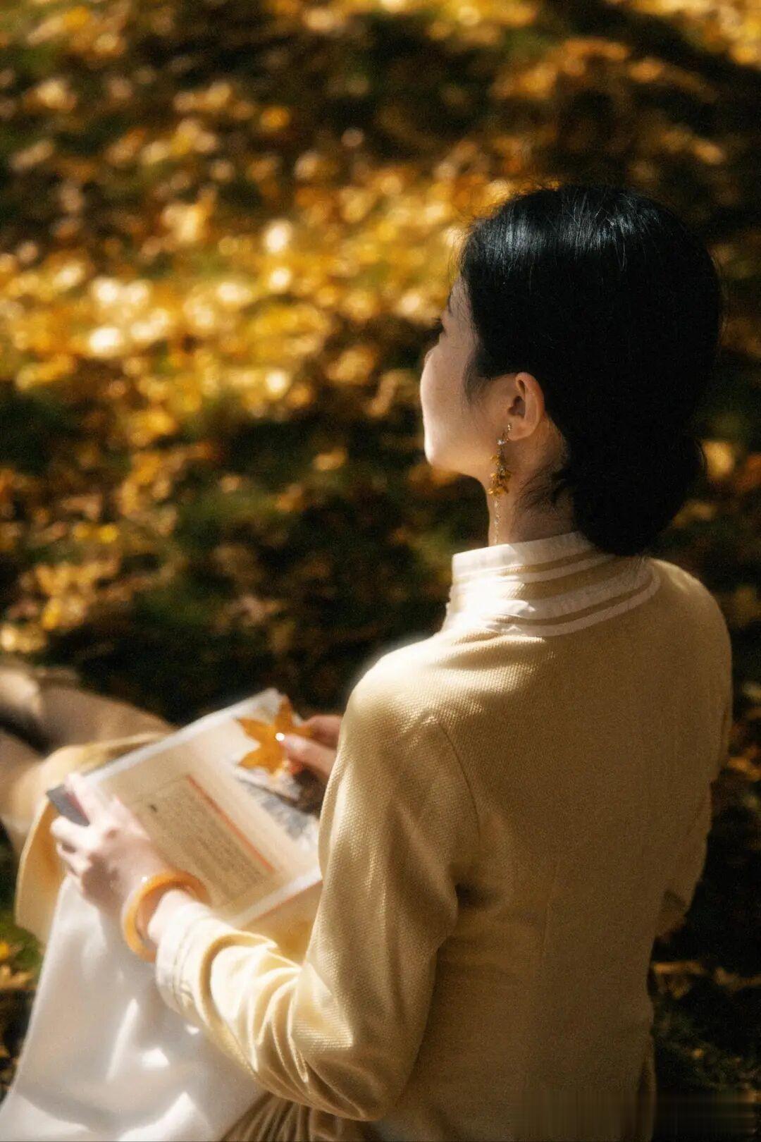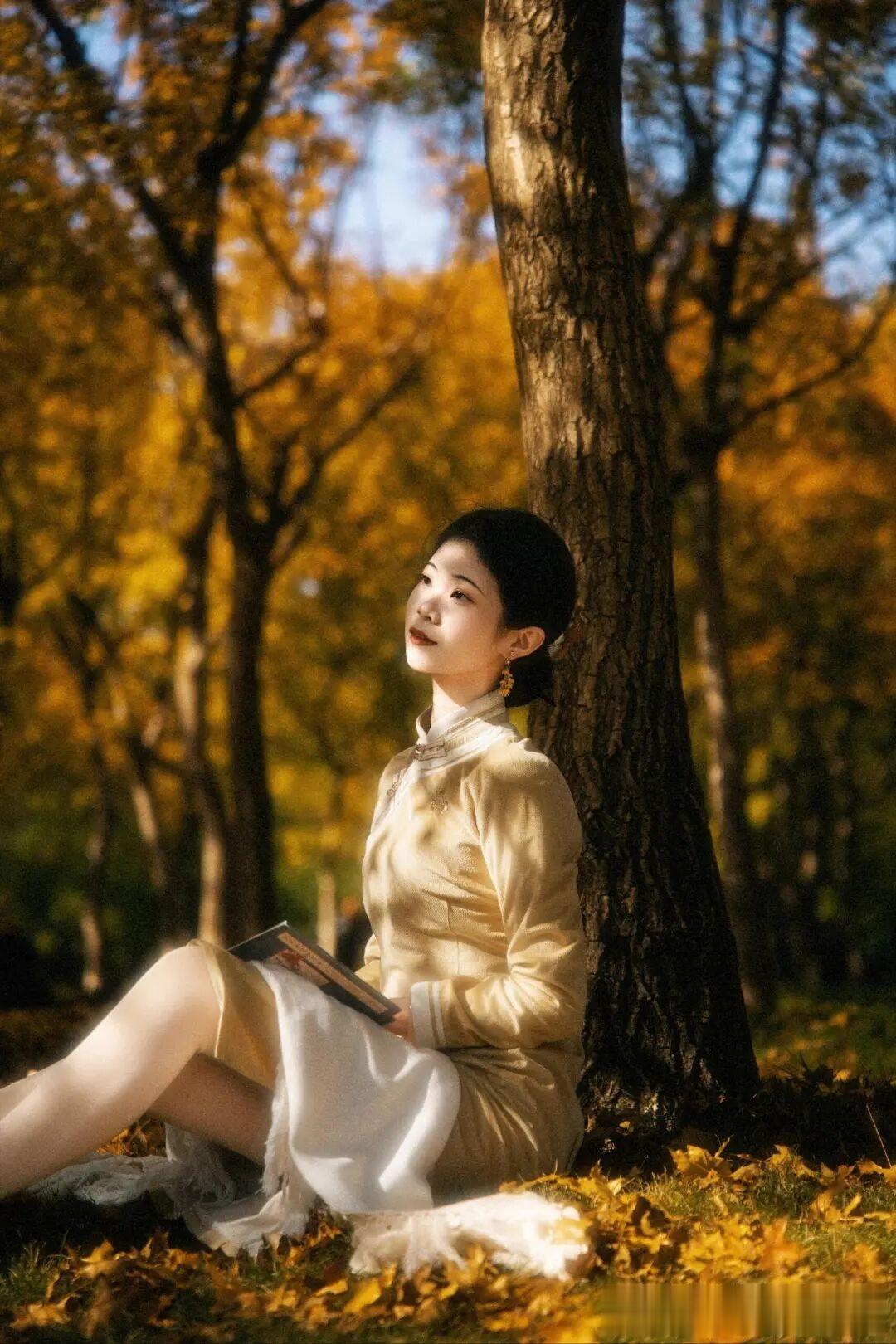 拍照时加入道具书本,宛若书香门第家的小姐,坐在树下,时而翻看几页,时而向远处眺望遐想。