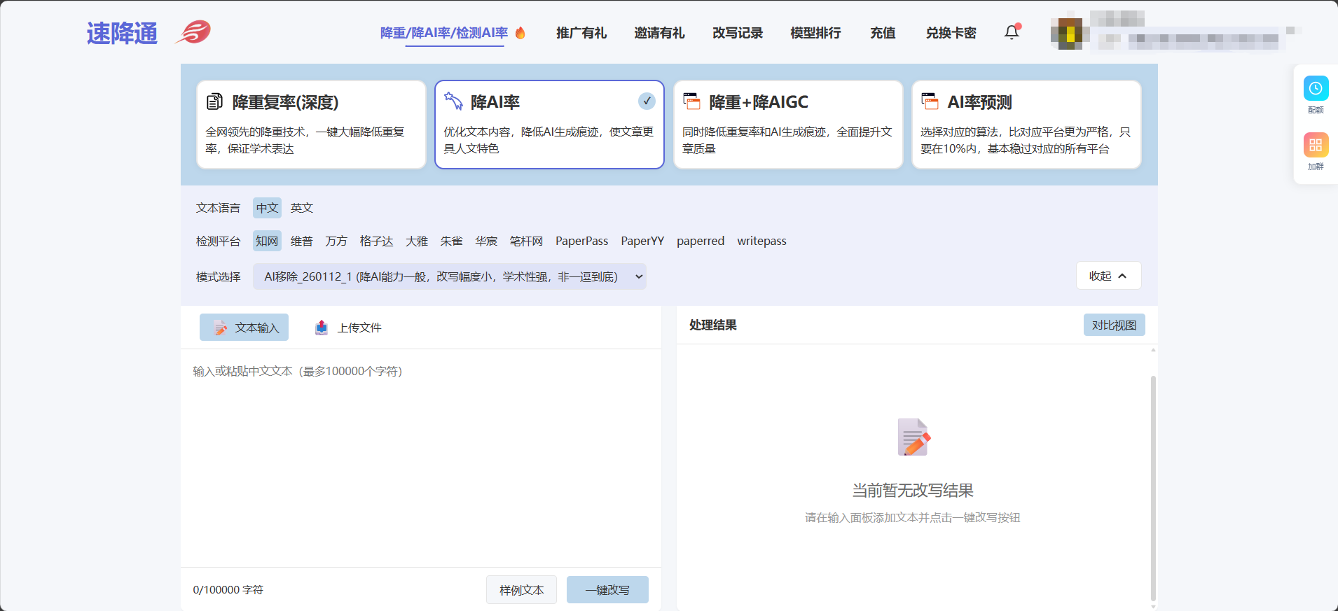 亲测封神——速降通:降AI率+降重双在线,量大党首选