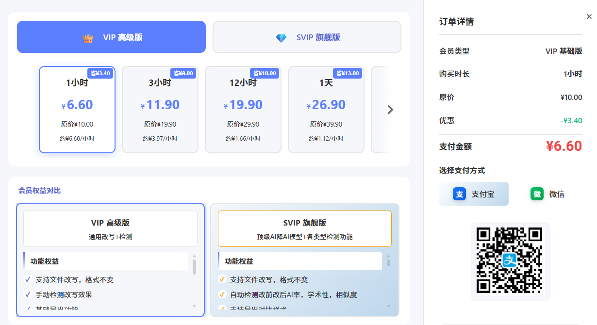这是最戳我的一点!市面上大多工具按字数收费,千字几块到十几块,3万字论文要花90块左右。速降通按时间充会员,最低每小时6.9元,还不限字数。我充2小时13.8元,改完3万字毕业论文+5000字小论文,性价比拉满,本科、硕士论文,还有批量改论文的人,用它巨划算。