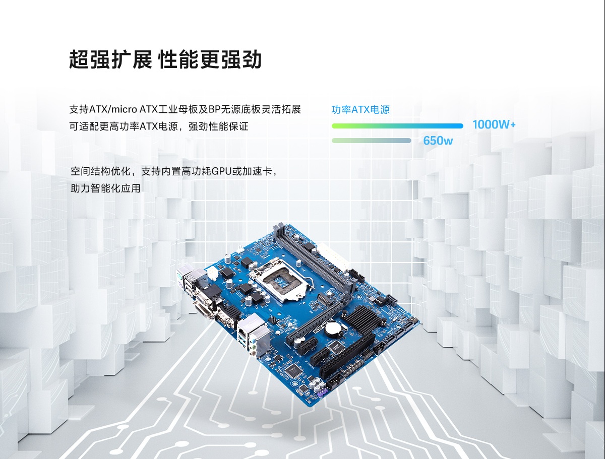 扩展能力更是它的 “王牌”:支持 ATX 和 Micro ATX 两种工业母板,预留了 PCIe×16、M.2 等多个插槽,想加运动控制卡、视觉采集卡,或者为了 AI 任务装 NVIDIA RTX 系列 GPU 都没问题。接口也给得足足的,8 个 USB、6 个 COM 口、4 个网口,再加上双 HDMI 显示输出,PLC、传感器、工业相机这些设备随便接,不用额外配转接器。