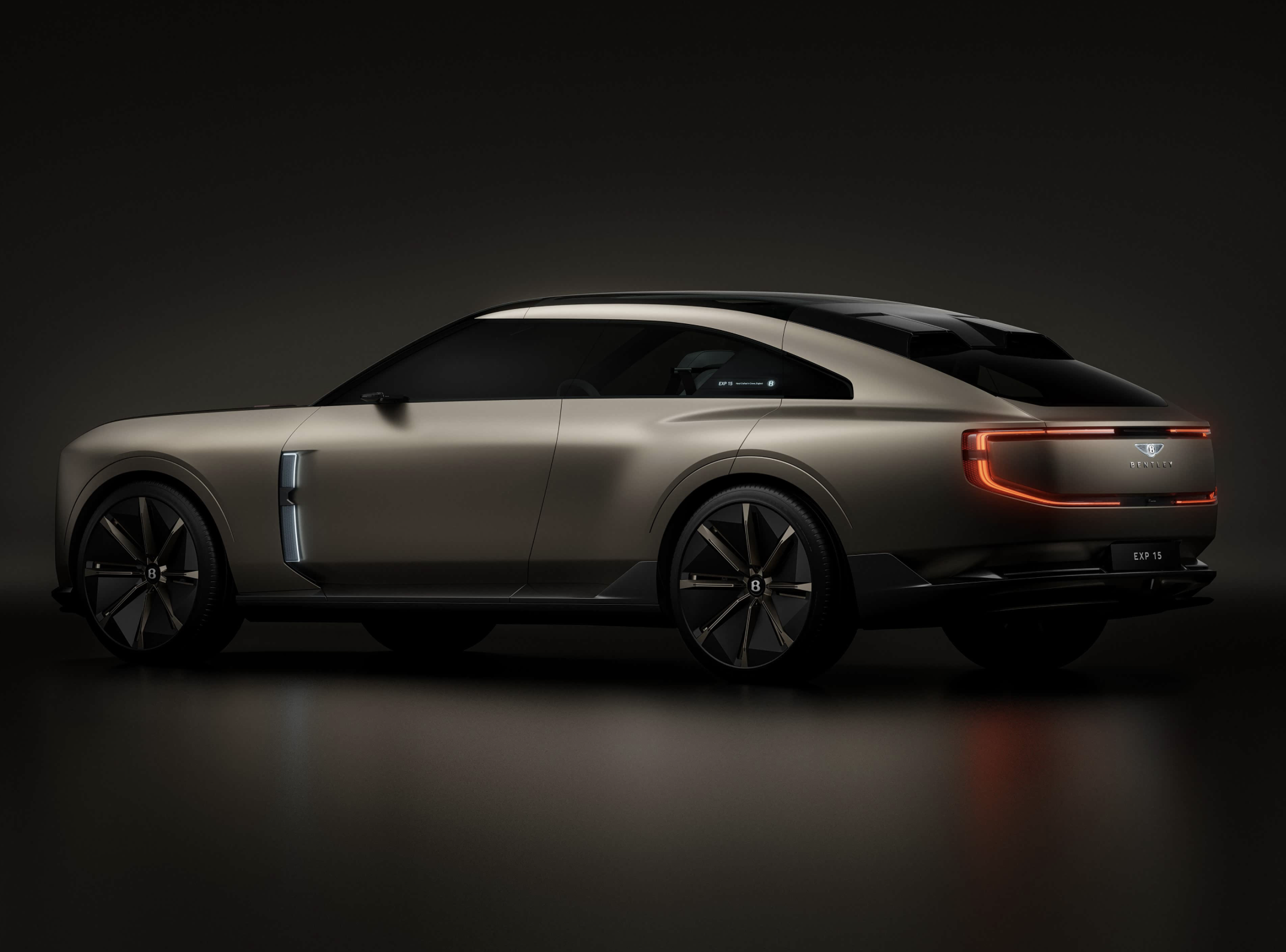 宾利全新纯电SUV的车身采用了更加前卫的设计,弧线形的黑色车顶与全车黑色隐私玻璃巧妙地的融为一体,与玫瑰金色的车漆涂装形成了鲜明的撞色对比。 配备了科技感超强的电子后视镜,熏黑的大尺寸封闭式饼状轮圈搭配着红色Brembo卡钳,再配上四个无边框车门、隐藏式门把手,很有跨界气息。宾利已经确认,这款电动SUV的尺寸将比添越稍小,后者的标准轴距版本长达5.1米,新款SUV将从宾利的冒险精神概念车EXP 15中汲取灵感,这款概念车在今年7月首次亮相。