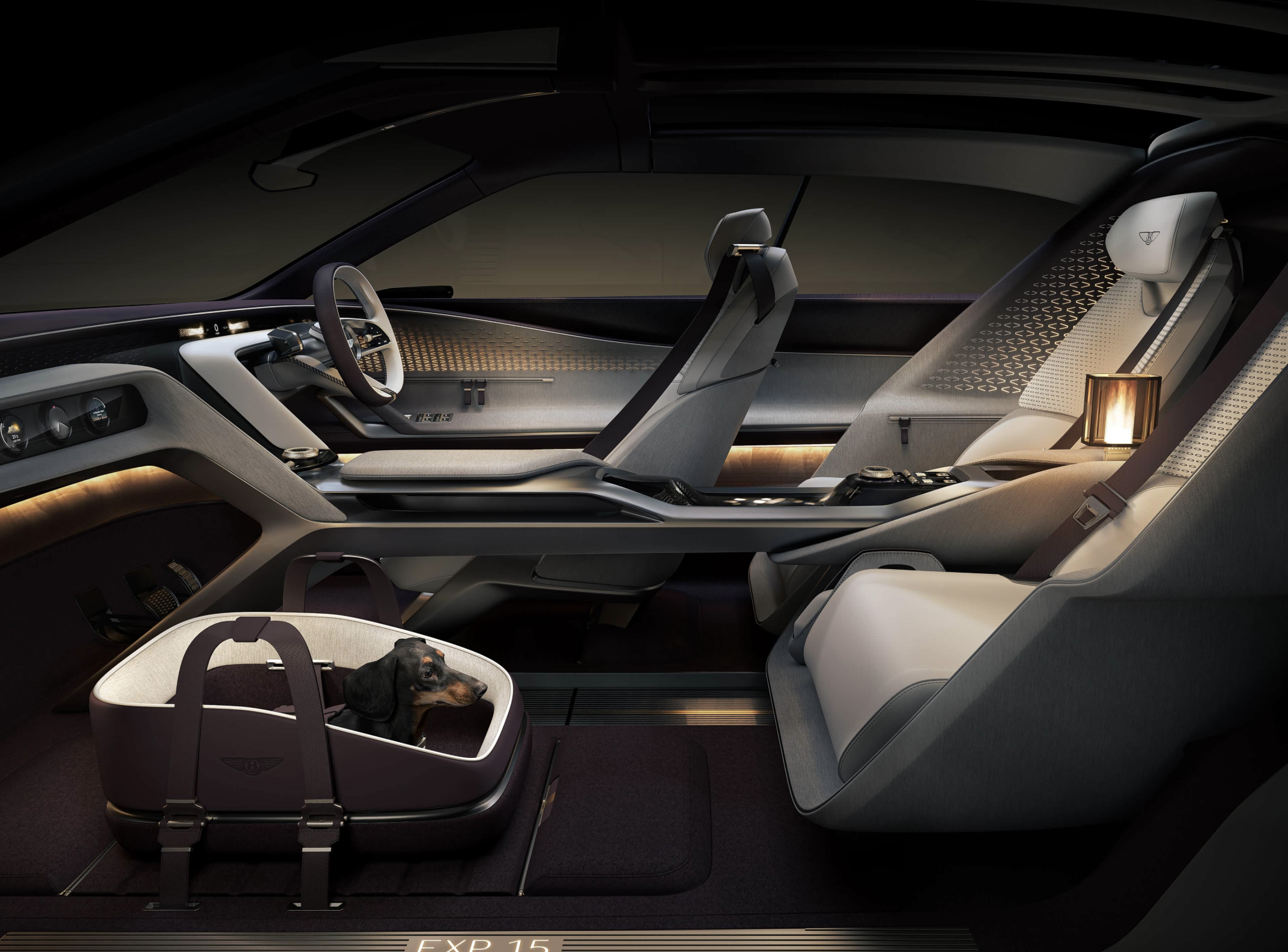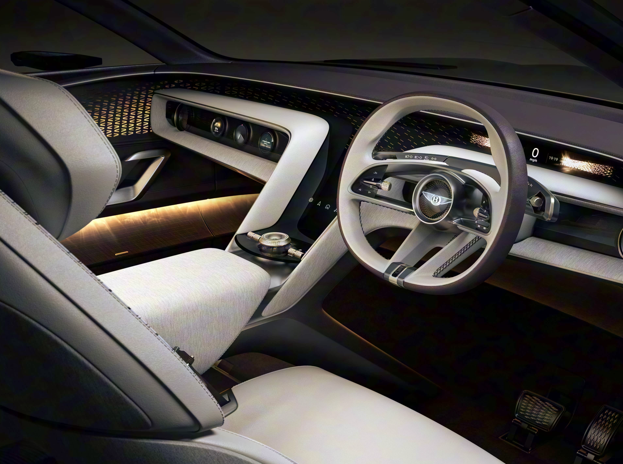 从官方提供的内饰图片来看,宾利全新纯电SUV座舱采用了酒红色诗米安材质的铺陈,再加上棕黄色装饰条点缀,还有随处可见的实木饰板、丝绸斜纹布和编织金属等高端材质的交替运用,在匠人的手里运用的灵活自如,将车内打造出了极具艺术感的品质。翻毛皮包裹的多功能方向盘加入了钛金属的换挡拨片,在12点方向还有一个黄色元素,很有超跑的感觉。可旋转的全宽数字仪表盘、可翻折的内嵌式中控大屏,中控台下方还配备了三个圆形的指针仪表和一块复古气息的机械表,提升了整车的华贵属性。别致的换挡手柄旁边加入了排列整齐的小方格机械按键,犹如商务手机一般,十分精致。4个真皮座椅的材质都采用了马鞍皮包裹,副驾驶还支持360度旋转,十分优雅,并带有座椅加热/通风/按摩功能,并支持多向电动调节、腰部支撑调节、腿托,犹如“移动的头等舱”