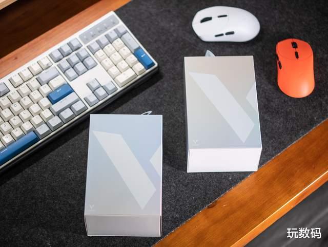 先不说性能,单看包装和配件就超出预期了。两款鼠标都用了雷柏电竞系列标志性的天地盖包装,正面银色“V”字Logo贼亮眼,VT1的黑色款沉稳,VT1 MAX的橘色款自带电竞感,拿在手里质感一点不廉价。