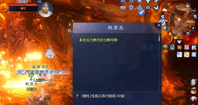 铜柱地狱的赵君生更是个“宝藏男孩”,一句“成也萧何败也萧何”直接勾起我的八卦魂。跑到柳家(98,145)和柳母对线,硬是把“读书人谈钱伤感情”的旧观念掰扯清楚,最后回到(128,100)交任务。