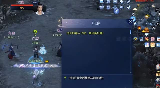 最离谱的是铁树地狱的门房,有人举着个“冤枉”牌子喊冤。按坐标(47,162)找到他,跟着跑完对话链,才发现他竟是被错抓的“背锅侠”。帮他厘清前尘后,突然觉得甲方那句“我觉得不太行”也没那么扎心了——毕竟地狱里还有更冤的。
