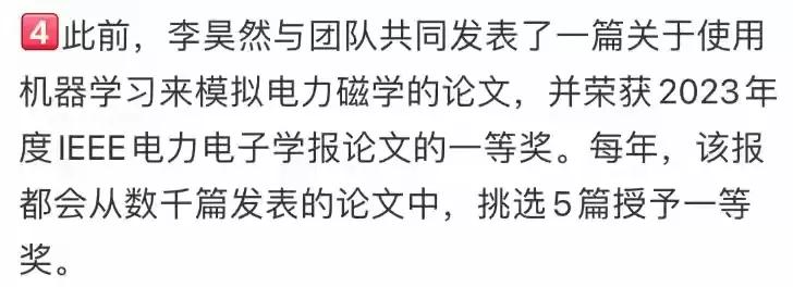 你要是翻他的履历,那简直是“别人家孩子”的顶配剧本:2016年考入清华,2019年本科毕业直奔普林斯顿,硕士、博士一路“打怪升级”,还当上了研究助理。更牛的是,他和团队写的那篇“用机器学习模拟电力磁学”的论文,直接拿下了2023年IEEE电力电子学报的一等奖。要知道,这期刊每年从几千篇论文里只挑5篇给一等奖。