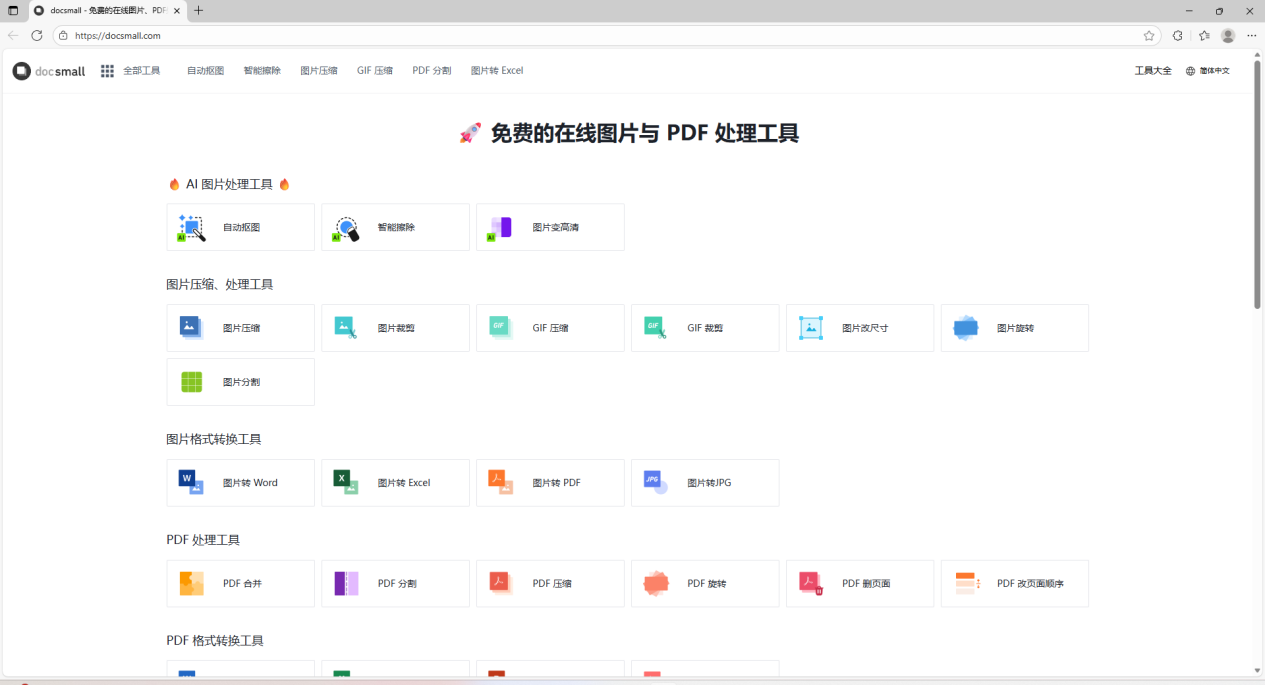 4、docsmall这是一个完全免费的图片和 PDF 在线处理工具。