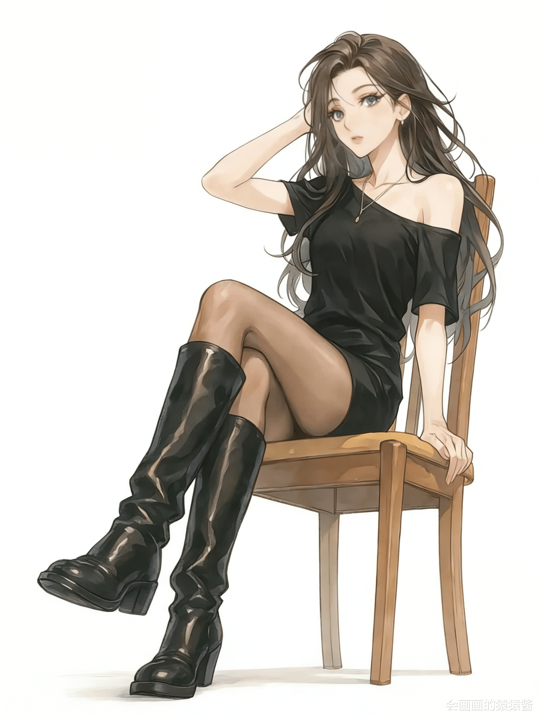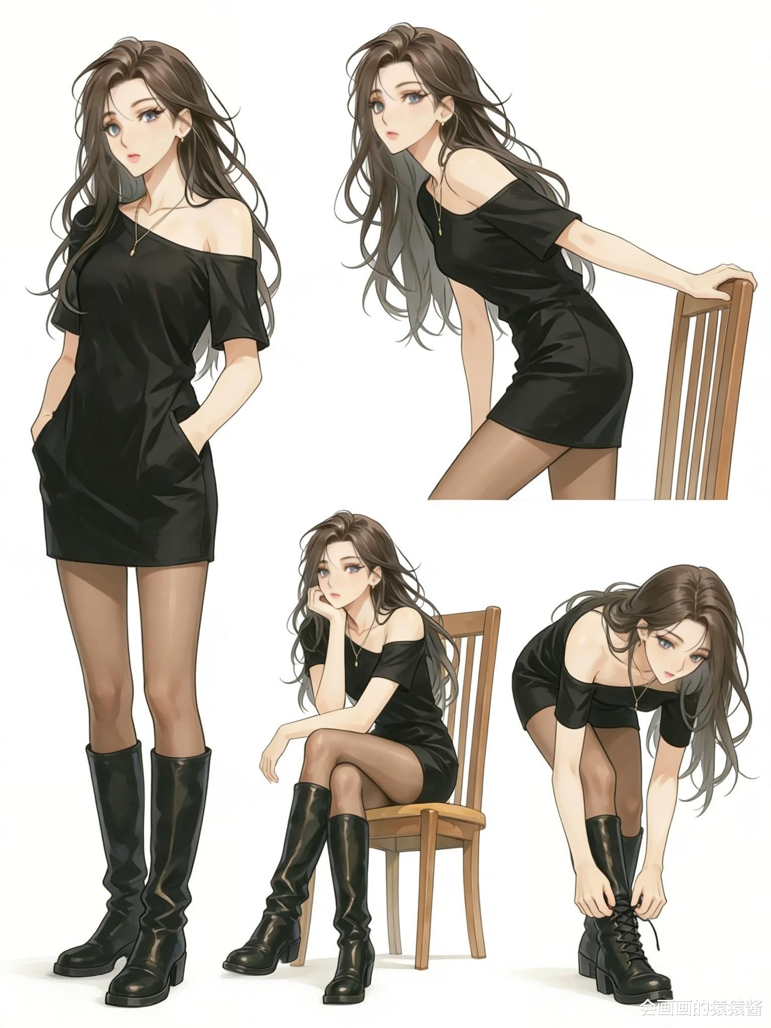 用ComfyUI生成这组职场风人物插画,能快速打造风格统一的多姿势视觉素材。画面中的女性留着浅金长直发,身着干练的黑色西装套裙,搭配尖头高跟鞋,兼具专业感与女性魅力。从插兜站立的飒爽姿态,到靠墙俯身的松弛感,再到趴桌休憩的慵懒神态,ComfyUI的节点式工作流保证了人物特征与穿搭风格的高度统一。